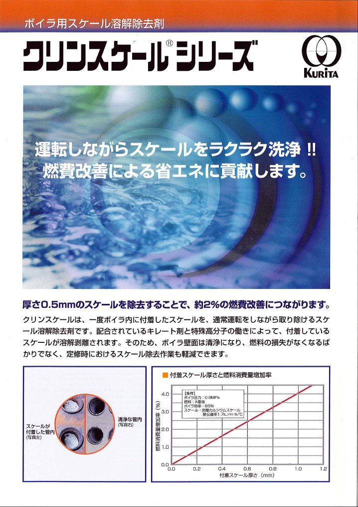 従来の機能、腐食防止・スケール防止に加えてスケール除去効果も有する薬品です。 |